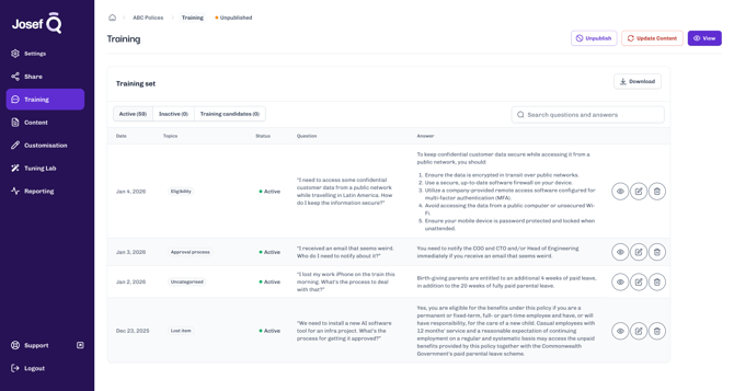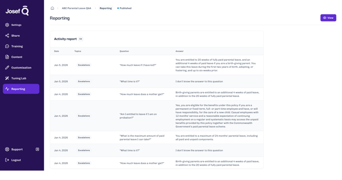 With topics, Josef Q tools will be able to automatically categorise questions into relevant topics, reviewable in the Q Dashboard.