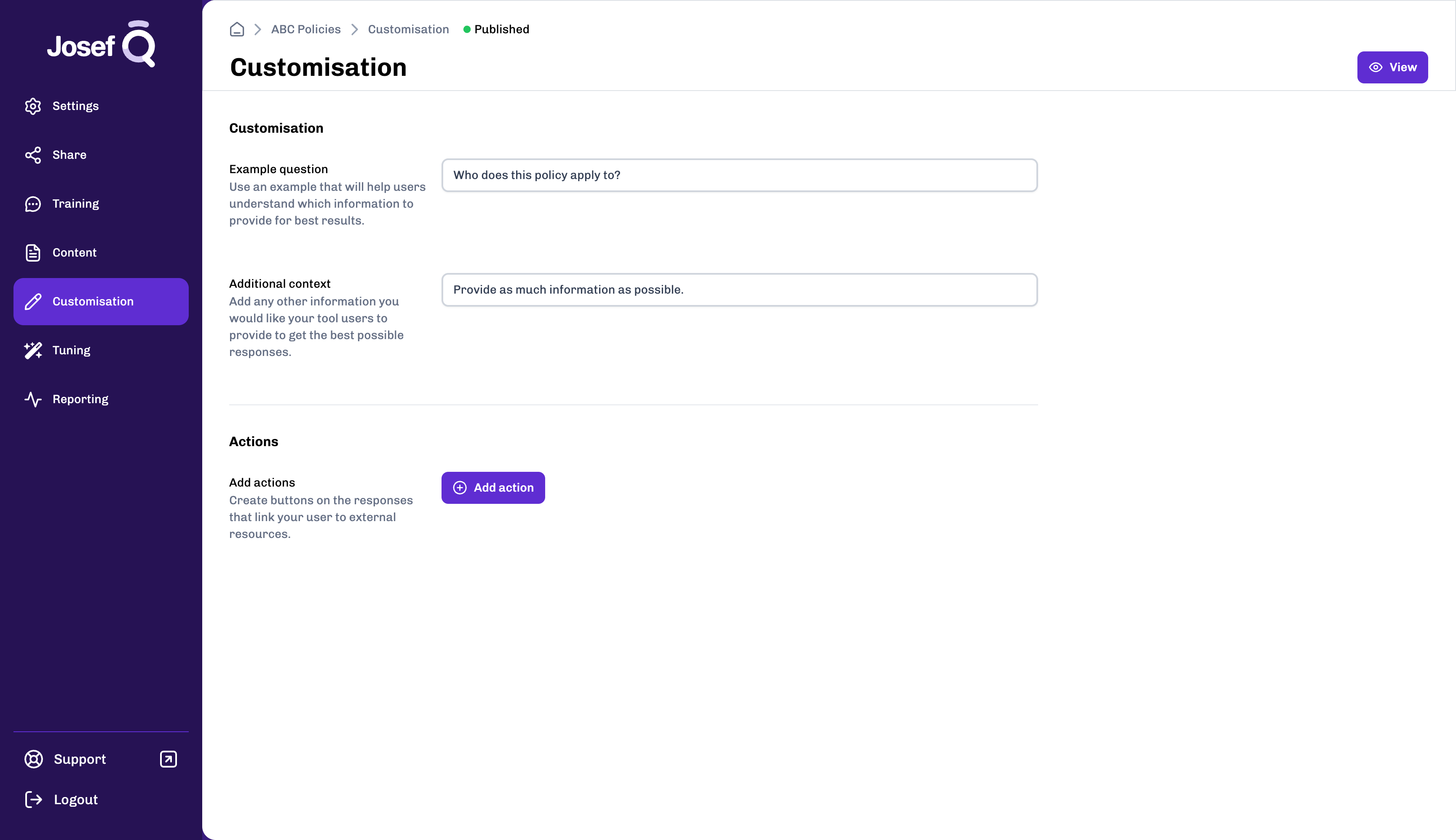 Coming soon! The ability to customise a tool’s branding, e.g. font, primary colour and secondary colours.