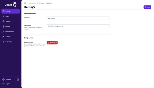 In a tool’s Settings, creators can edit a tool’s name and its description.